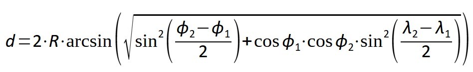 La distance d‘entre deux points sur une sphère de rayon R estdonnée par la formule de Haversine :